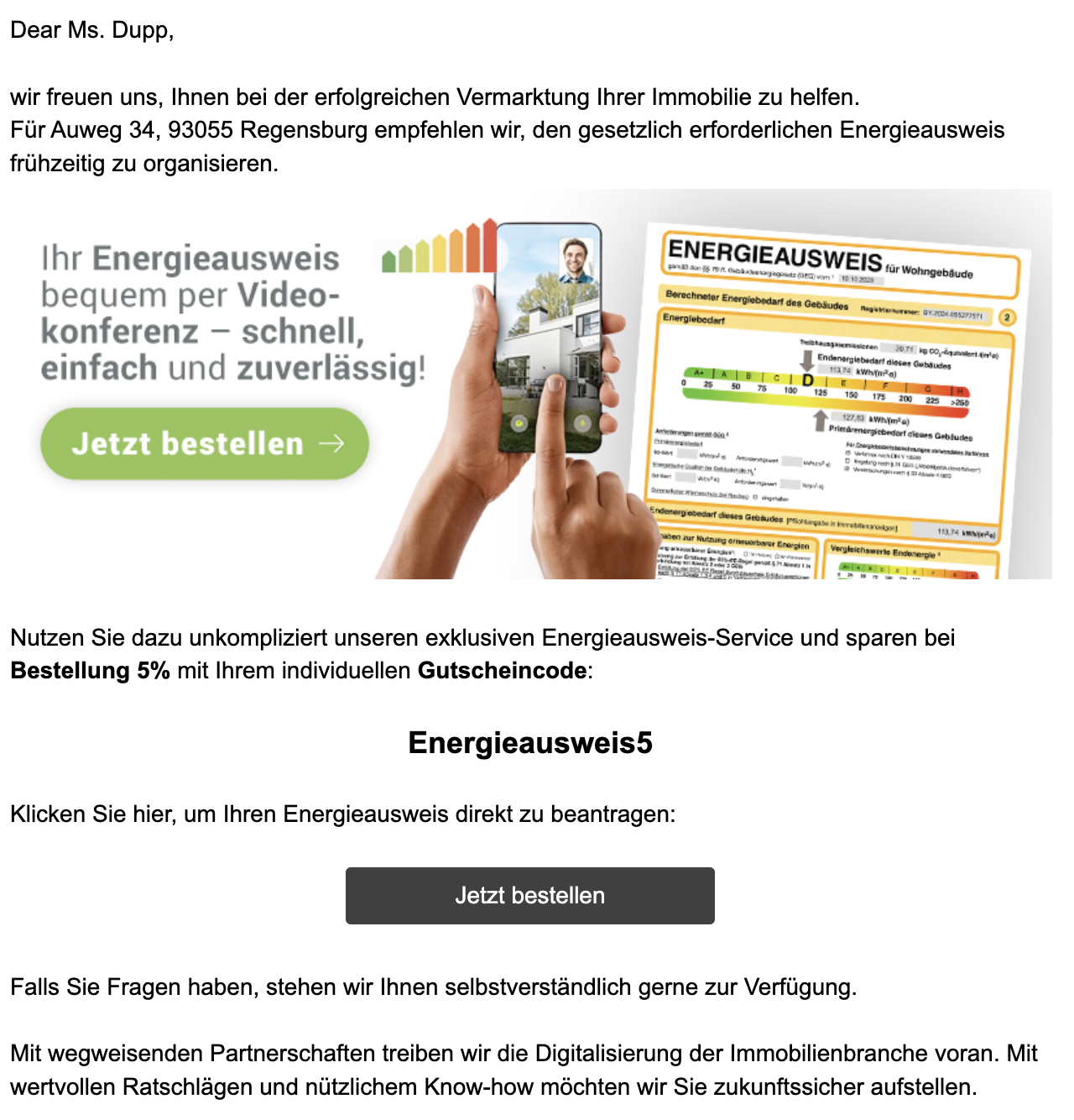 Erleichterte Energieausweis-Beantragung durch neue E-Mail-Vorlage