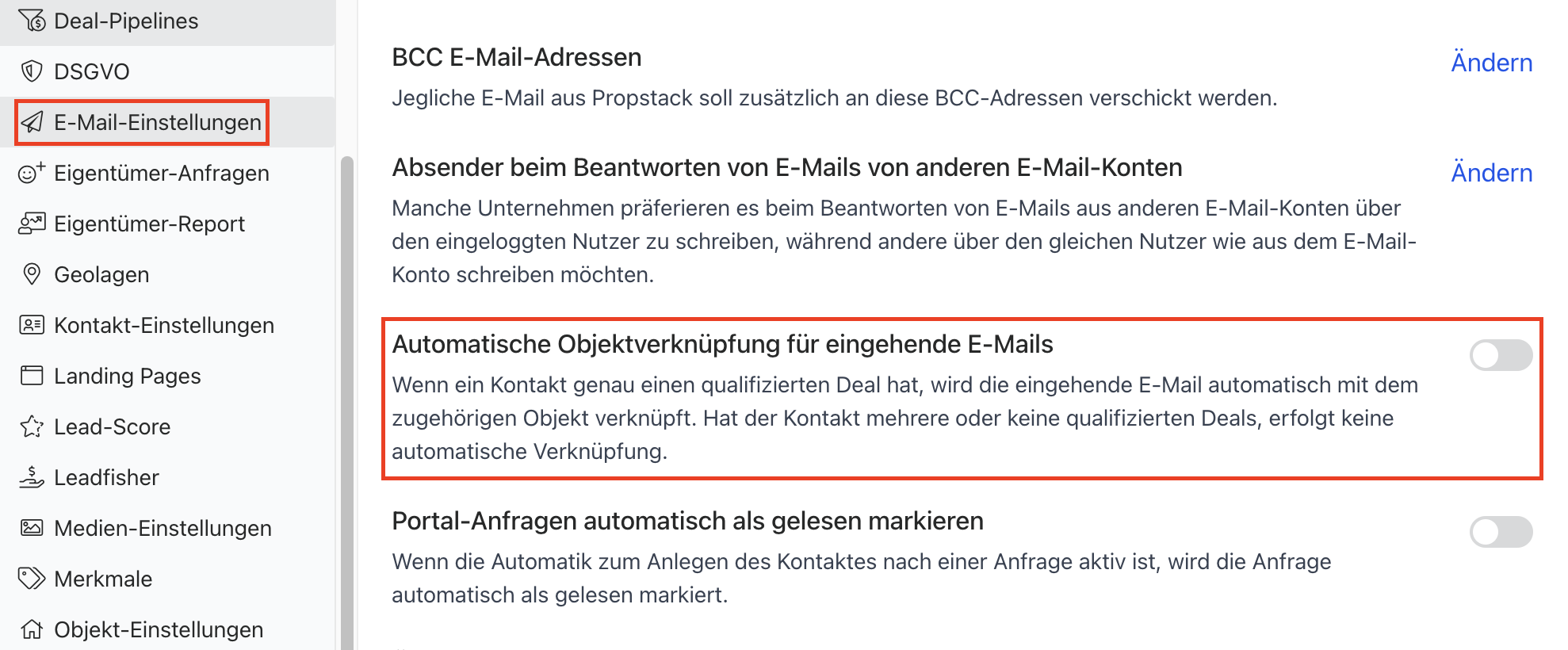 Ihr könnt die Einstellung jederzeit individuell in den E-Mail-Einstellungen anpassen. Weitere Details zu dieser zeitsparenden Funktion findet Ihr in unserem Hilfecenter unter dem Artikel „Automatische Objektverknüpfung für eingehende E-Mails„.