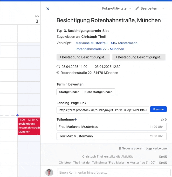 Mit der neuen Funktion „Individuelle Zu- oder Absagen bei Massenterminen“ machen wir Euer Terminmanagement in Propstack noch effizienter. Ab sofort könnt Ihr einzelne Teilnehmer innerhalb eines Slot-Termins individuell bestätigen oder absagen, ohne den gesamten Termin zu bearbeiten.