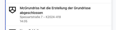 Die Benachrichtigungsfunktion über die Glocke ist eine praktische Neuerung in der McGrundriss-Integration. Ab sofort werdet Ihr direkt informiert, sobald Eure Grundrisse fertiggestellt oder Rückfragen von McGrundriss aufkommen.