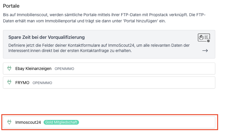 Ab sofort könnt Ihr Eure ImmoScout24-Mitgliedschaft (Gold, Silber oder Bronze) direkt in Propstack unter Verwaltung > Portale einsehen, wenn Ihr zur neuen Mitgliedschaftswelt gehört.